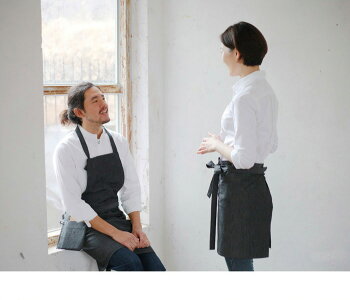 高級コーティング処理のストーンデニム素材で製作されたチェストエプロン スッキリとしたデザインのエプロンと素材で機能性にも配慮し スタイリッシュに仕上げました。
