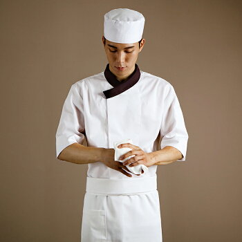 高密度のコットン+ポリエステル生地で 一般の生地に比べて汚れに強く、 シワになりにくいうえ変形しにくい 高級シェフウェア素材で優れた機能を誇ります。