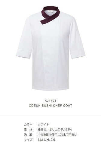 バーガンディーカラーが目を引く和食シェフコート☆Odeun sushi chef coat (White) #AJ1794☆ユニフォームデザイナー専門ブランド a.mont☆飲食店・ホテル・サービスユニフォーム(制服)接客・厨房・コックコート・エプロンなどの専門店です♪ ☆a-montジャケット