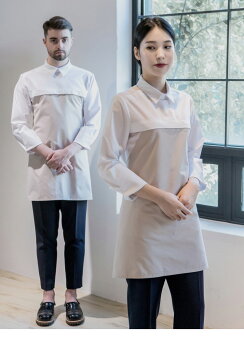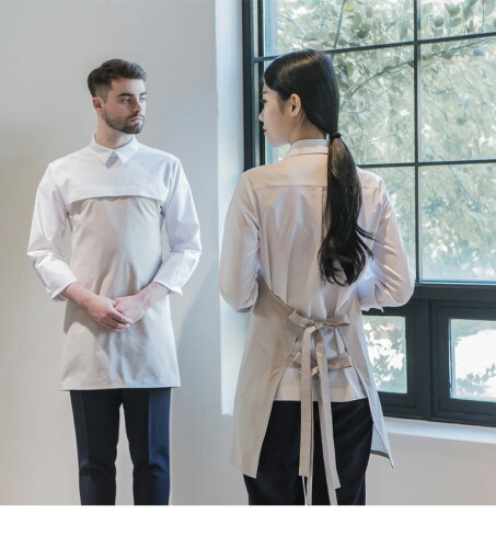 ユニークなデザインのエプロンとセットアップのシャツ☆Set-up apron side snap loup shirt [SET] #AS1844☆ユニフォームデザイナー専門ブランド a.mont☆飲食店・ホテル・サービスユニフォーム(制服)接客・厨房・コックコート・エプロンなどの専門店です♪ ☆a-montシャツ