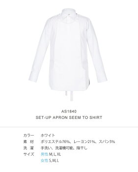 ユニークなデザインのエプロンとセットアップのセットシャツ☆Set-up apron seem to shirt (White) #AS1840☆ユニフォームデザイナー専門ブランド a.mont☆飲食店・ホテル・サービスユニフォーム接客・厨房・コックコート・エプロンなどの専門店です♪ ☆a-montシャツ