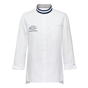動きやすい立体パターンのシェフコート シェフコートに適した撥水加工の生地を使用し 汚れに強く、生地変形最小化した素材です。