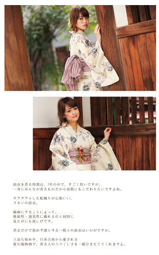 ◆サイズ 身丈155cm 裄丈66cm 袖丈49cm 適応身長 150〜160cm位 ◆素材 ゆかた:綿80% 麻20% 帯:ポリエステル 下駄:桐(商品画像はイメージです。