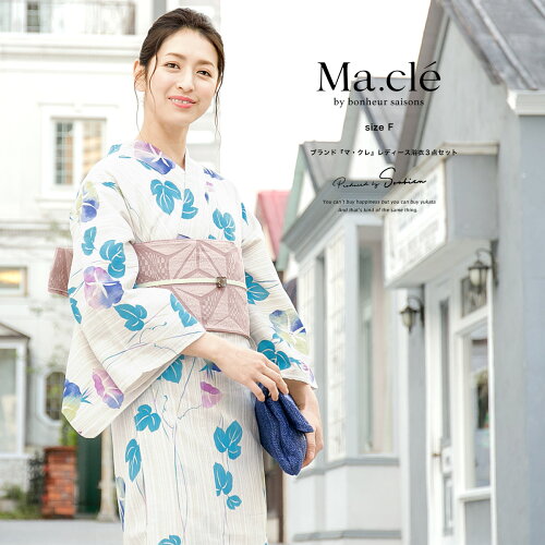 浴衣 セット レディース レトロ 浴衣セット 3点セット ベージュ 茶系 水色 紫 朝顔 あさがお 花 綿麻 兵児帯 女性 ボヌールセゾン マクレ 30代 40代 ママ 大人浴衣 フリー 【送料無料】【あす楽対応】【浴衣 セット】